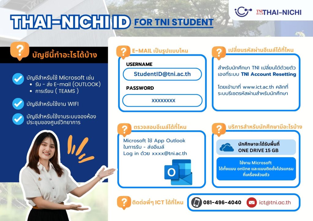 เปลี่ยนรูปแบบการ Log in ใหม่ ทุกระบบเข้าใช้งานด้วย Username : xxx@tni.ac.th