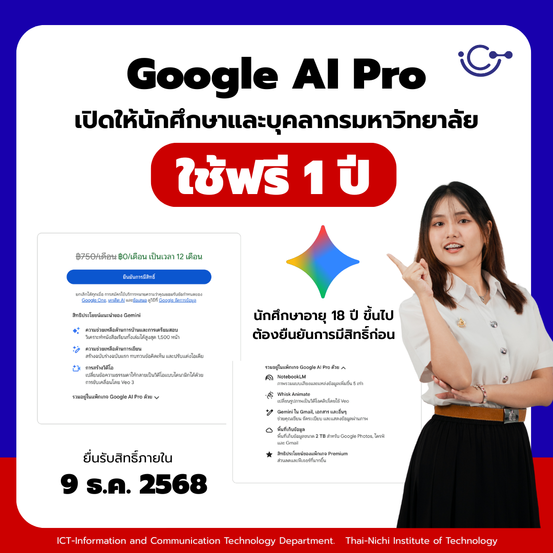 Google AI PRO เปิดให้นักศึกษาและบุคลากรทุกมหาวิทยาลัย ใช้ฟรี 1 ปี ยื่นรับสิทธิภายใน 9 ธ.ค. 2568 นี้ !!